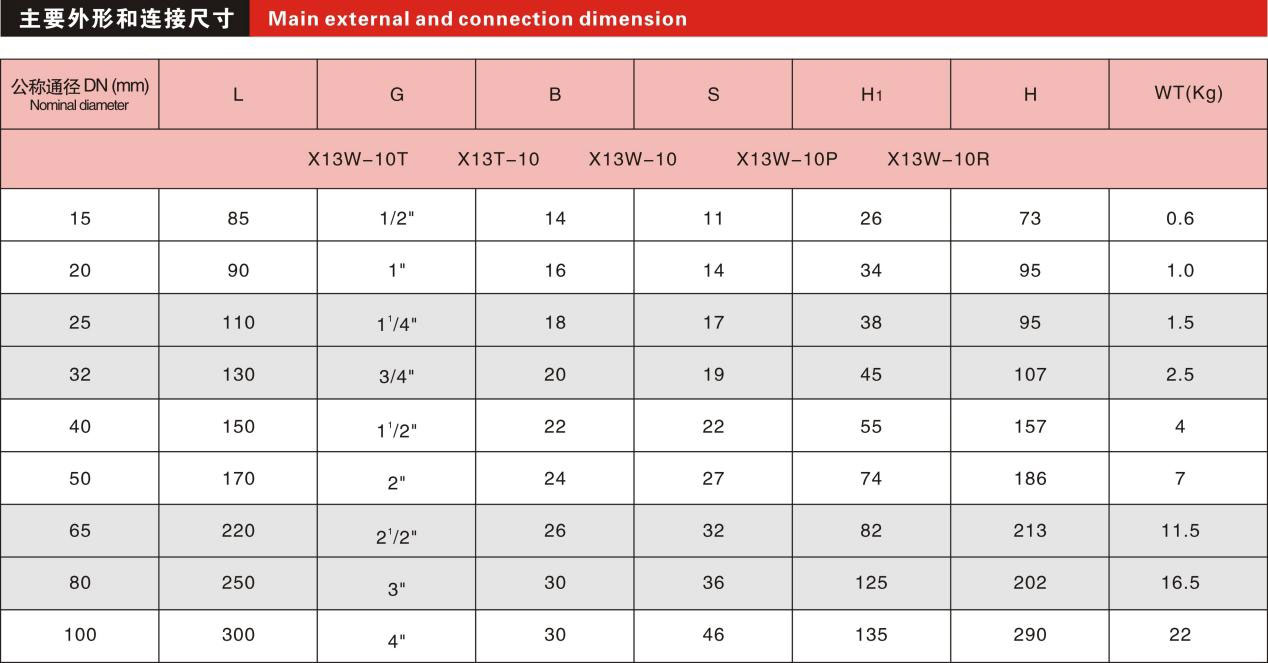 公稱壓力:2.5MPa 適用溫度范圍:-20~232℃~350℃ 適用介質(zhì):水、油、氣及某些腐蝕性液體(W.O.G) 螺紋類型:G·NPT.BSPT.BSP DIN259/2999。